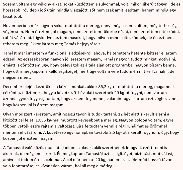 Én távolabbról közelítem meg az alakformálás, fogyás, testkompozíció témakörét és a legtöbb személyi edzővel ellentétben nem az edzés és diétázás kettősében látom a megoldást, hanem egy teljeskörű támogatás keretében.
